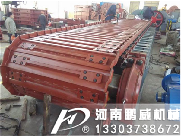 板式給料機(jī)是由傳動(dòng)系統(tǒng)、鏈板輸送機(jī)構(gòu)、料倉(cāng)及機(jī)架構(gòu)成;其中輸送機(jī)構(gòu)的鏈板、鏈條、插銷、滾輪等為易損件,以不同的使用強(qiáng)度和頻率,率先出現(xiàn)磨損變形,需要用戶更換板式給料機(jī)剛度高,可適應(yīng)一定粒度的大塊物料,料倉(cāng)容積大,可有效縮短鏟車送料時(shí)間,但同時(shí)鏈板傳動(dòng)速度較慢,承載能力大。